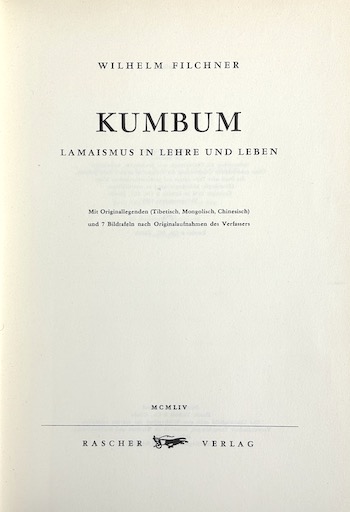 „Im Jahre 1933 erschien bei F.A. Brockhaus, Leipzig, mein Buch «Kumbum Dschamba Ling», das in Fachkreisen gut aufgenommen wurde. Durch Bombenangriff im Zweiten Weltkrieg gingen Druckstöcke und Bildmaterial verloren, zu einer Neuherstellung des umfangreichen und kostspieligen Werkes fehlten die Mittel. Wenn ich mich nun entschlossen habe, eine stark gestraffte aber vollkommen neu gefasste Darstellung des wesentlichen Buchinhaltes unter dem Titel «Kumbum, Lamaismus in Lehre und Leben» erscheinen zu lassen, so ist das geschehen, um einmal vielen Wünschen und Nachfragen zu entsprechen, zum andern um einem breiteren Leserkreis, der sich durch mancherlei Fäden mit fernöstlicher Welt verbunden weiß, einen wenig bekannten und doch recht reizvollen zentralasiatischen Kulturkreis vor das geistige Auge zu rücken.” Aus dem Vorwort von Wilhelm Filchner